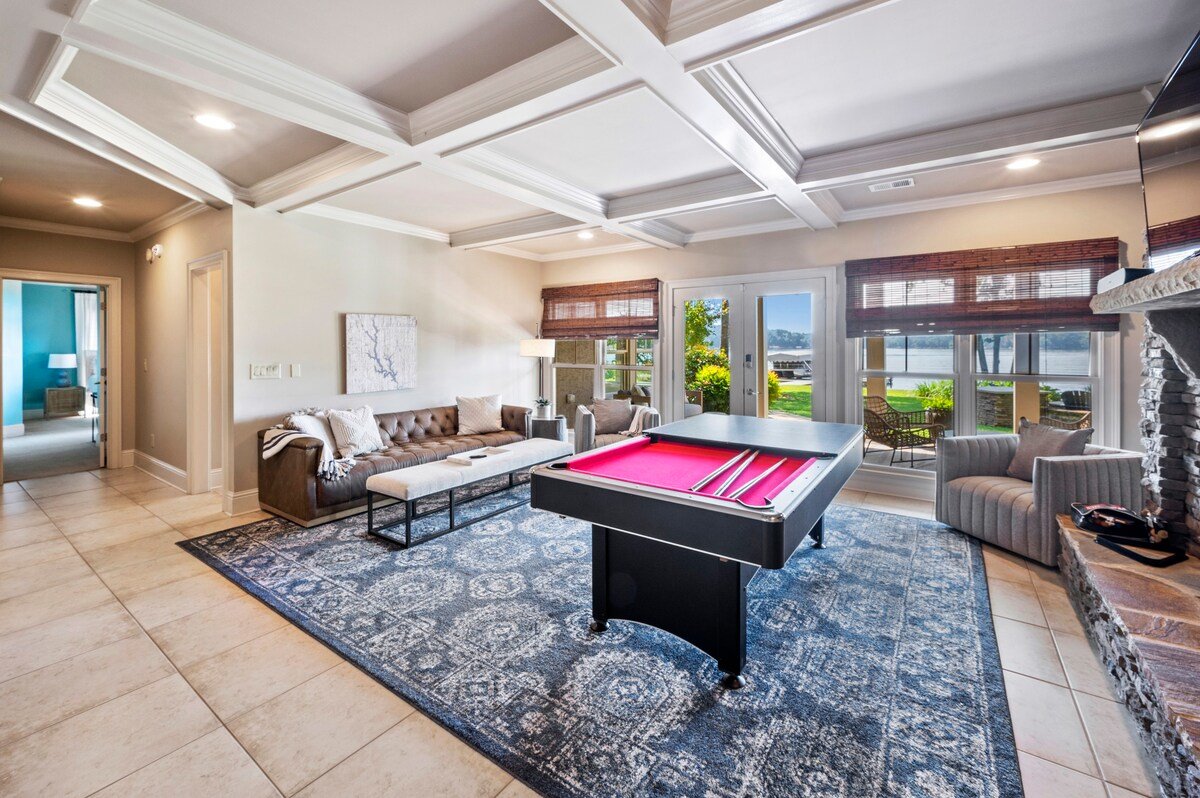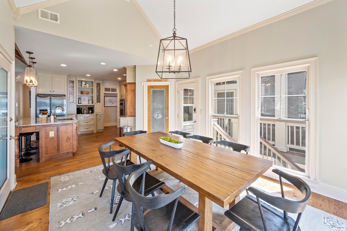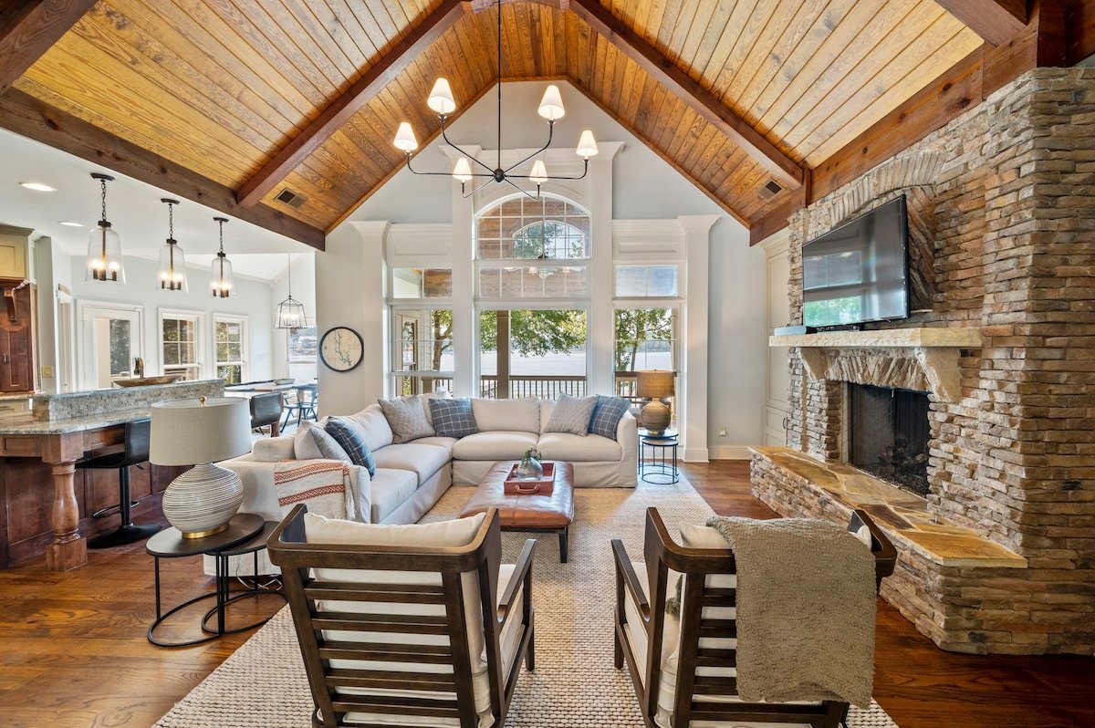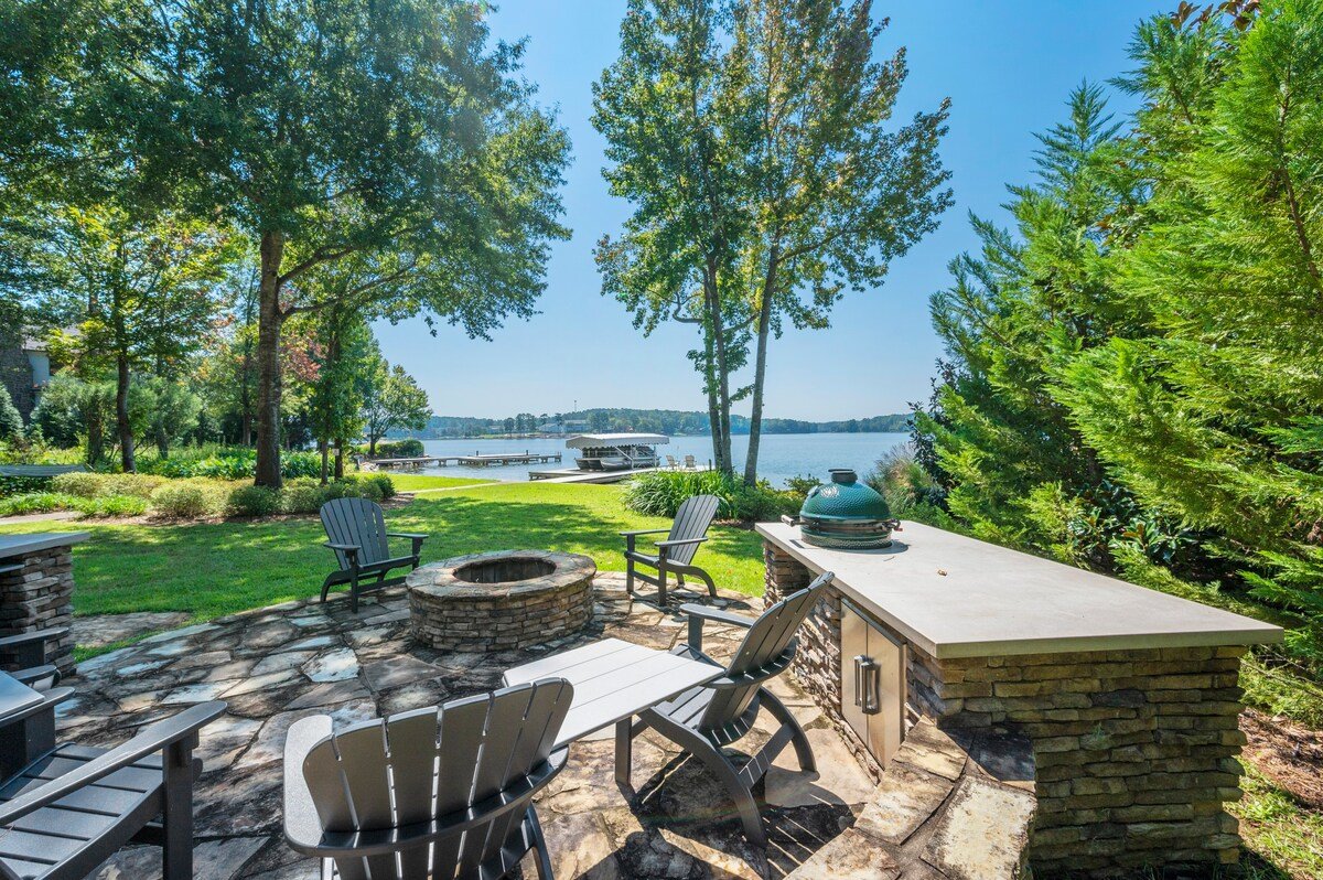 Bring your family (or two) & Escape To Wildwood for a fantastic lake vacation. The home features picturesque views of the lake from every room of the home! The gourmet kitchen and open living space(s) are perfect for relaxing, laughing and/or just making memories together.The outdoor lakeside living areas include a large deck, a terrace level patio and a screened in porch with a fireplace. There is a beautiful stone firepit & grilling station lakeside. Dock your boat at the max dock