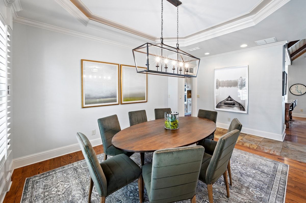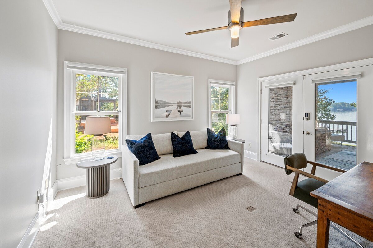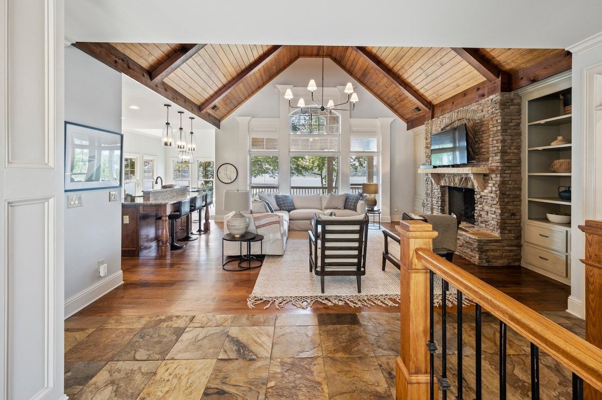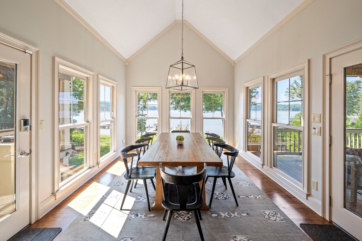 Bring your family (or two) & Escape To Wildwood for a fantastic lake vacation. The home features picturesque views of the lake from every room of the home! The gourmet kitchen and open living space(s) are perfect for relaxing, laughing and/or just making memories together.The outdoor lakeside living areas include a large deck, a terrace level patio and a screened in porch with a fireplace. There is a beautiful stone firepit & grilling station lakeside. Dock your boat at the max dock