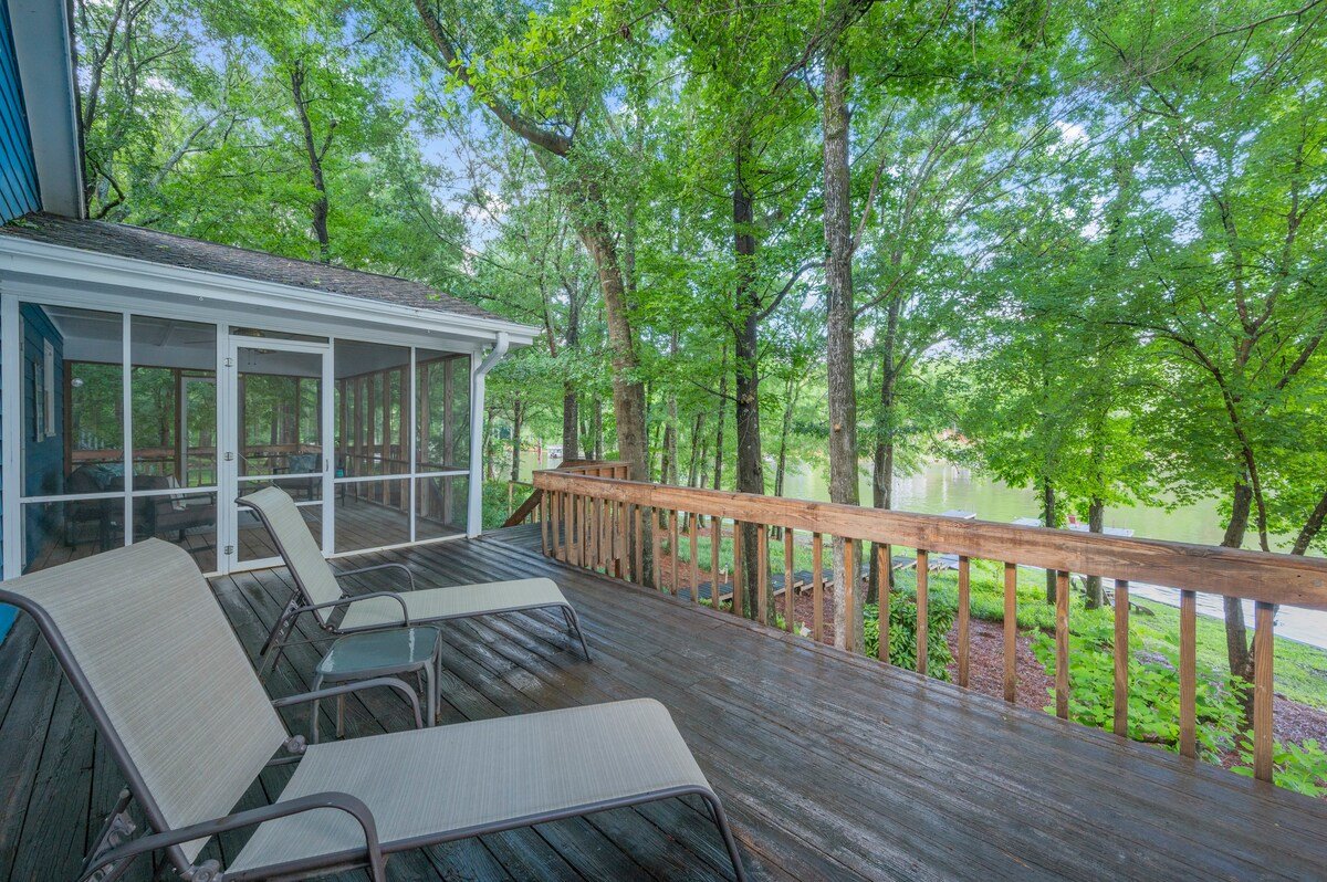Located on deep water & near local amenities, this updated, spacious home is features a large kitchen, 2 living areas (main & terrace level), a screen porch & 2 decks overlooking the lake
