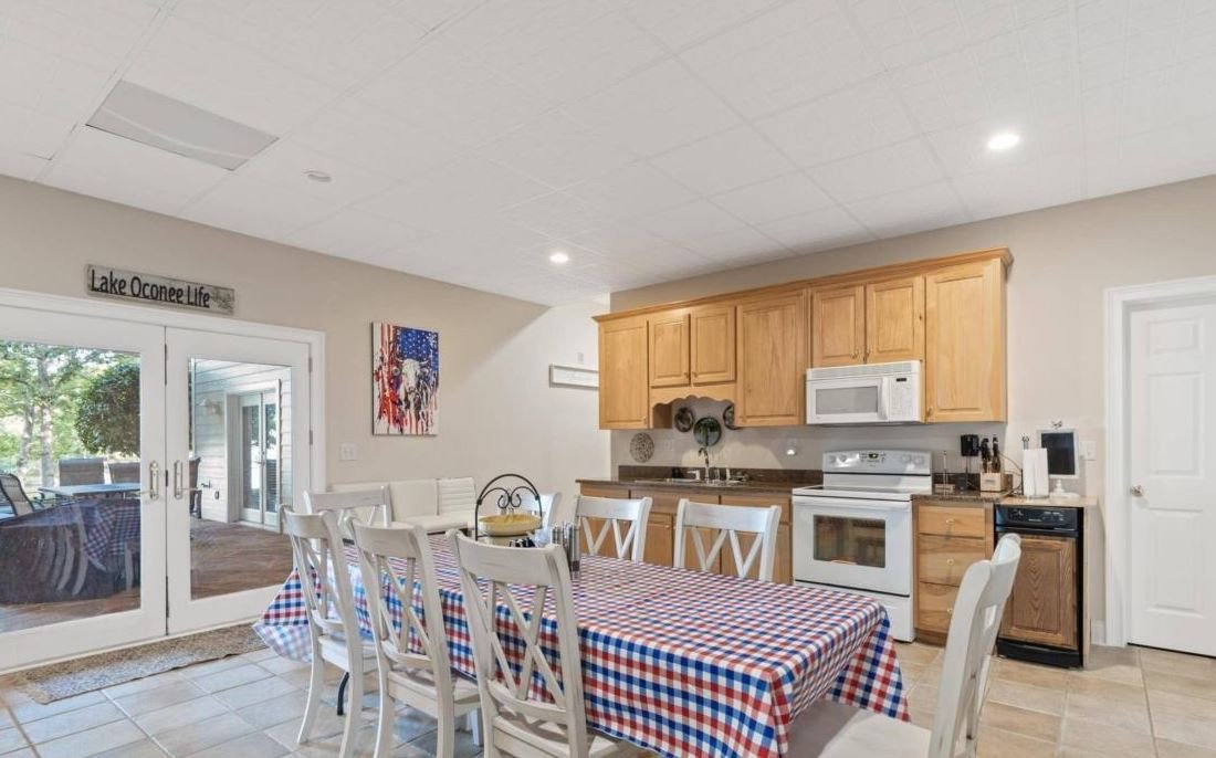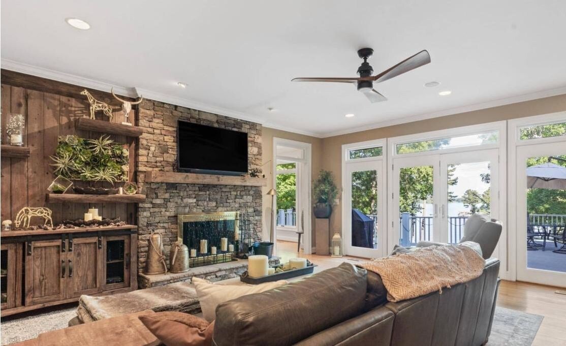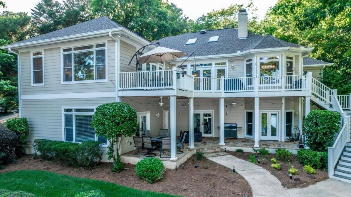This beautiful, well decorated home is perfect for a large family gathering or a couple of families to meet up at the lake. The property features a fully-equipped gourmet kitchen, 2 living areas, both a covered & open lakeside deck, a firepit, a beverage center and a ping-pong table on the terrace level...to keep the kids entertained.