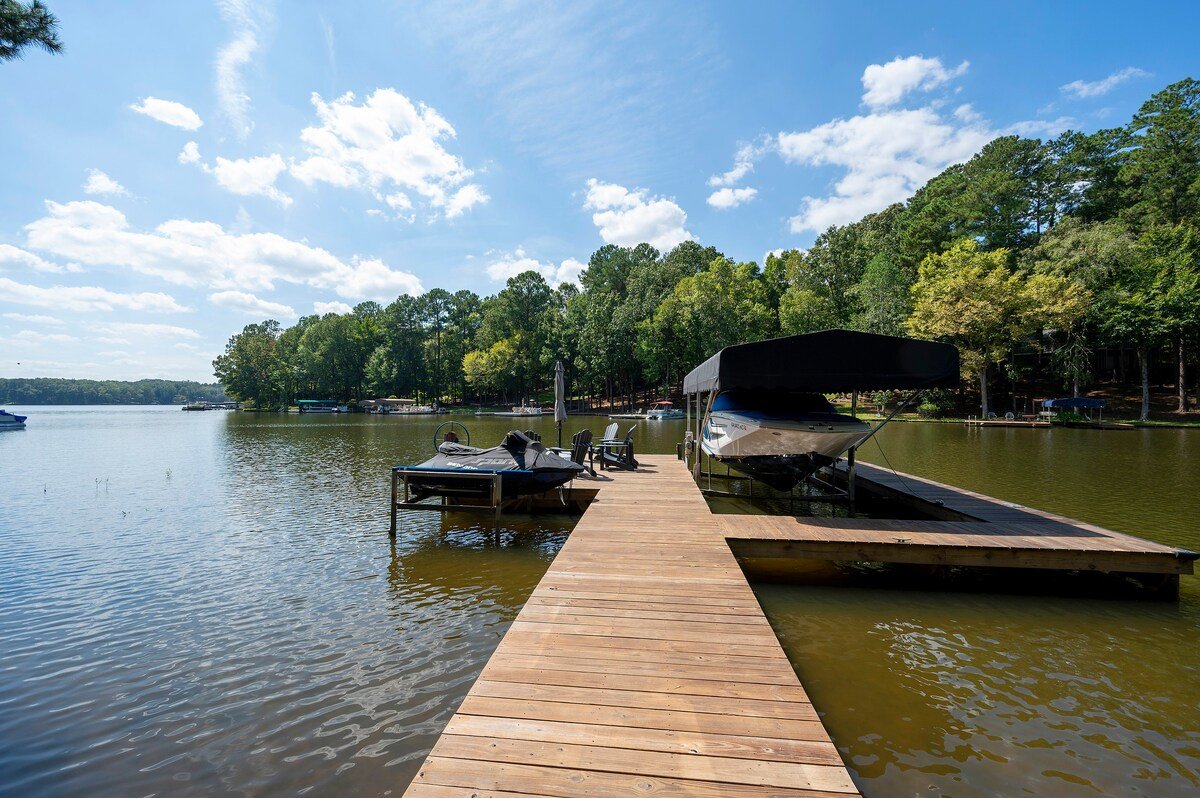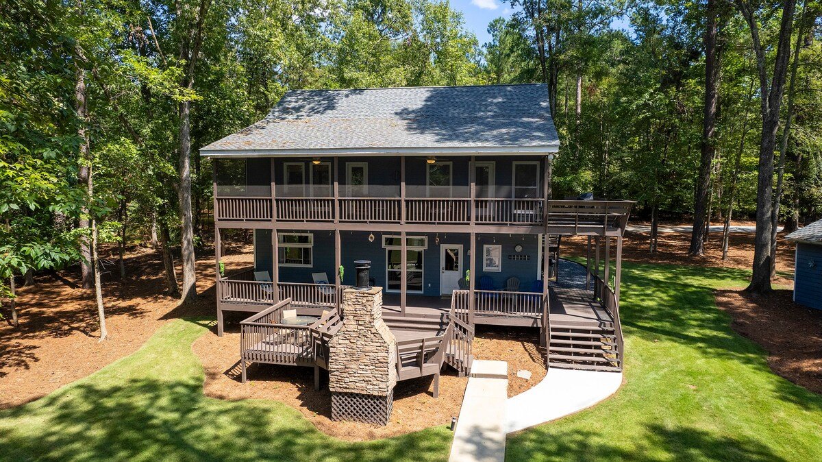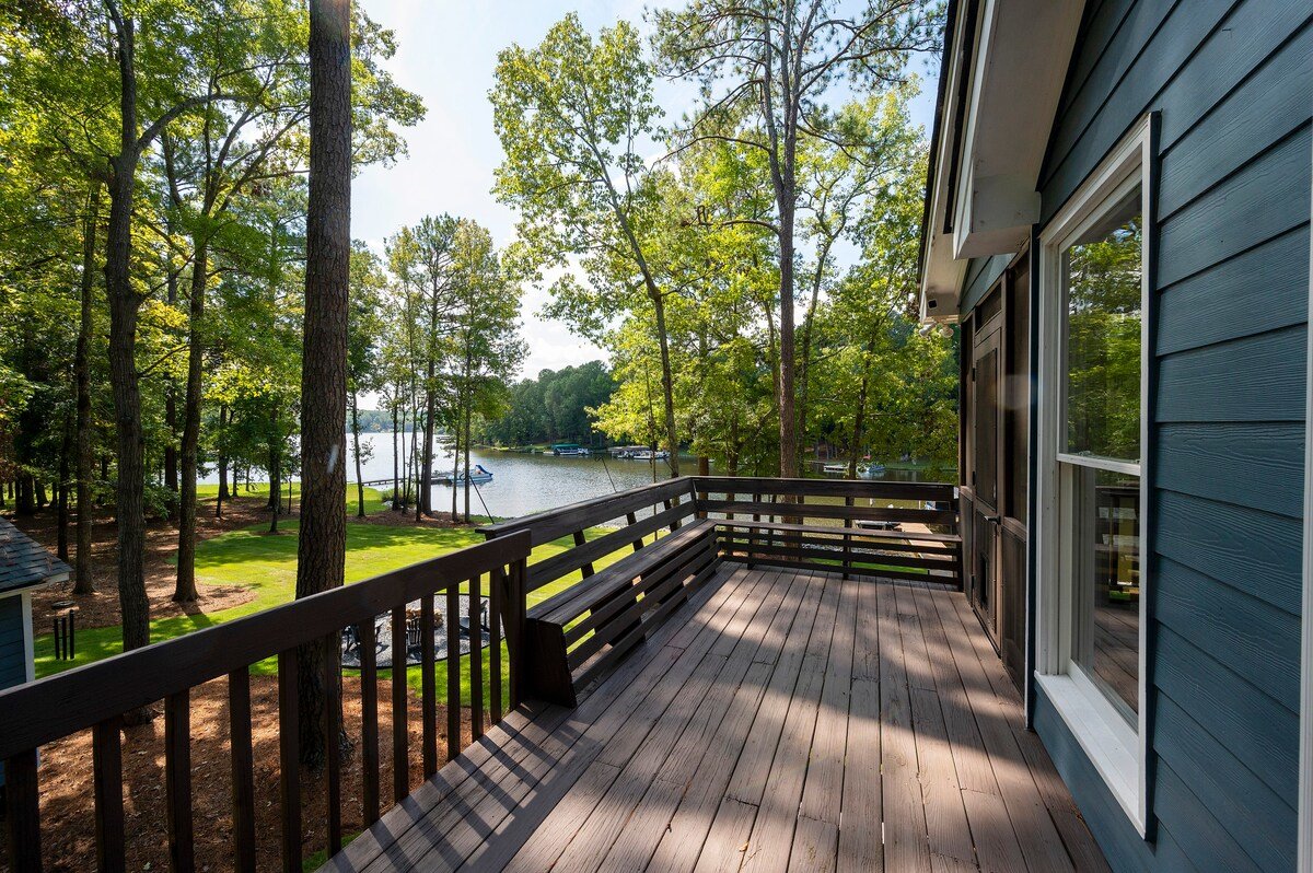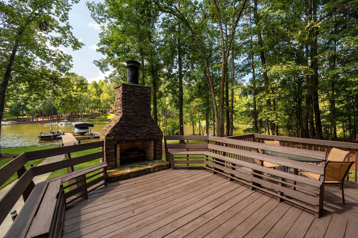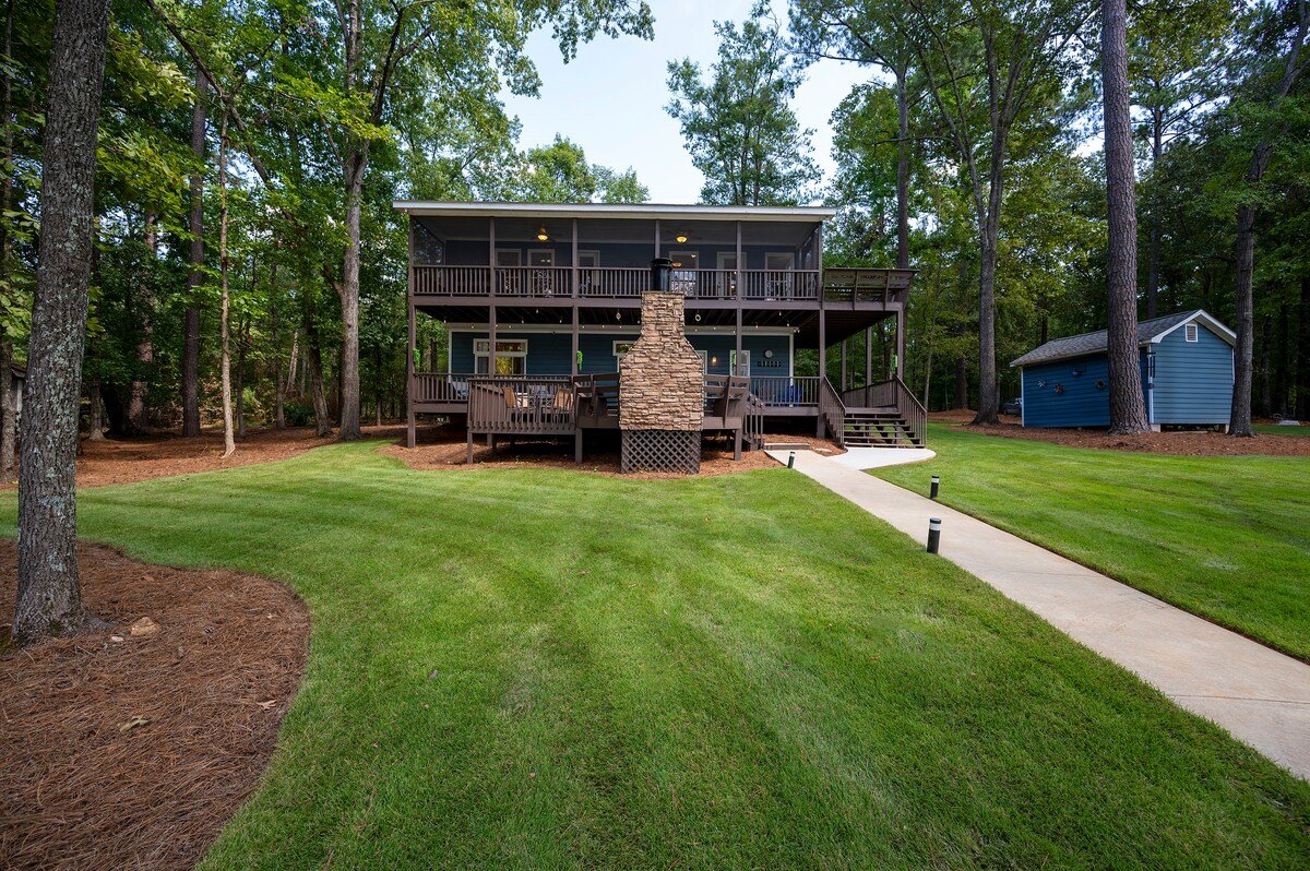Lakeside Hideaway is a picturesque property in a tranquil, secluded cove off Sugar Creek. The 4br/2b home provides ample space for your vacation or a weekend getaway. Driving in you'll get the "Hideaway" vibe. The beautifully landscaped outdoor living area features a large deck w/fireplace & a firepit.Lower level has a living room, 2 bedrooms & full bath. Ascend to the upper level into the open living area, primary ensuite & 2nd bedroom.Lakeside Hideaway promises an unforgettable experience.