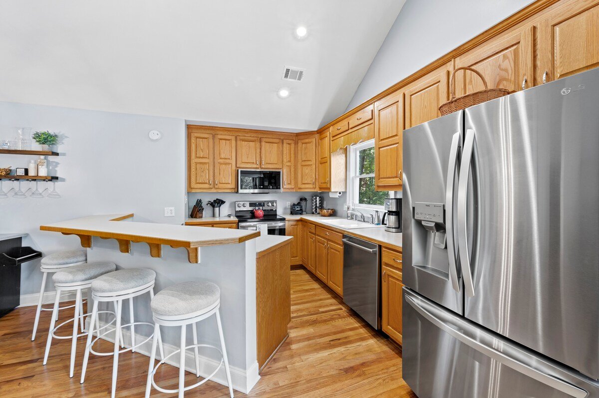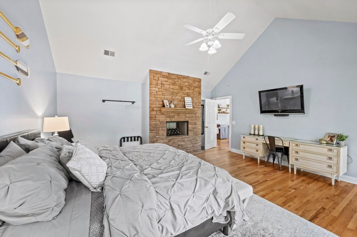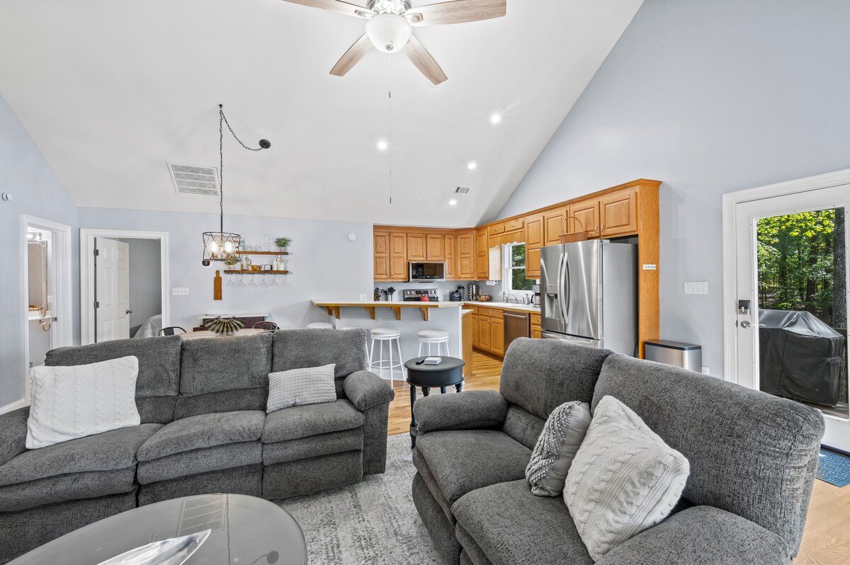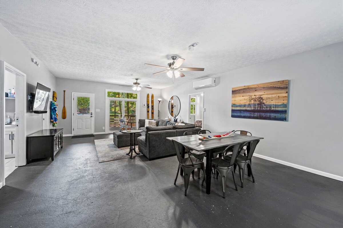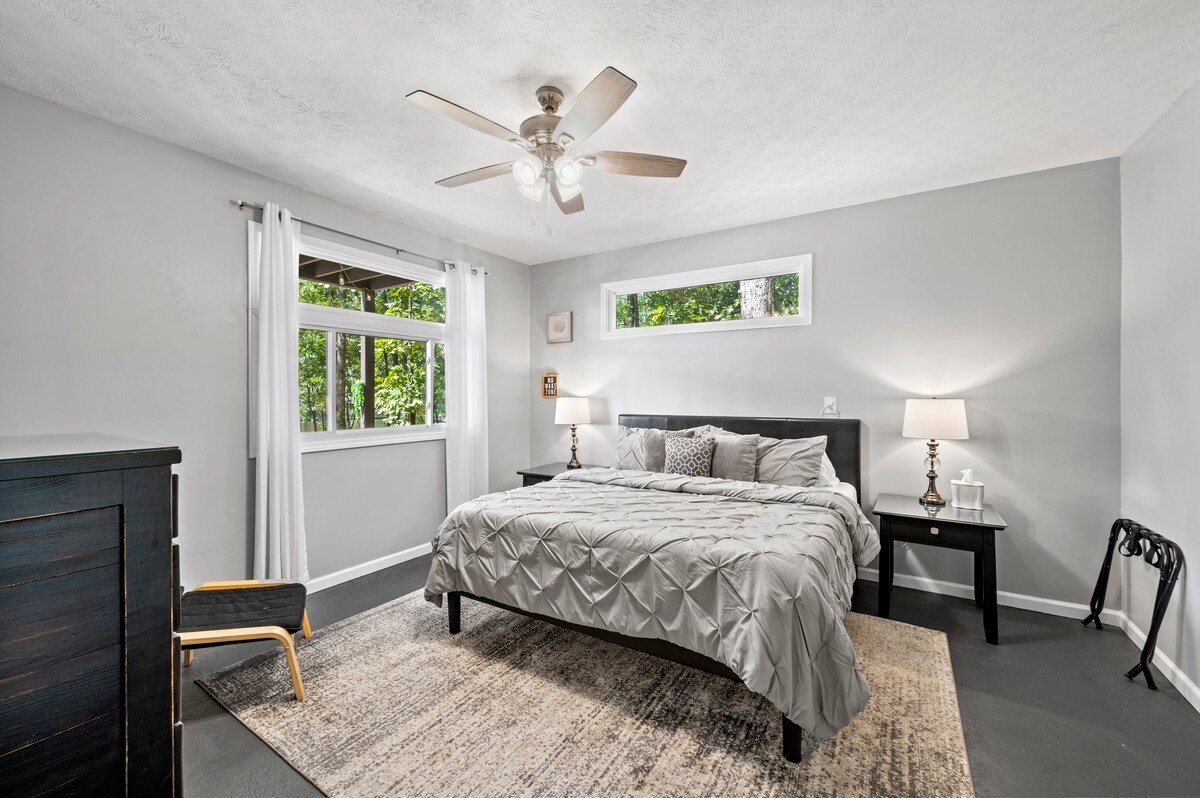 Lakeside Hideaway is a picturesque property in a tranquil, secluded cove off Sugar Creek. The 4br/2b home provides ample space for your vacation or a weekend getaway. Driving in you'll get the "Hideaway" vibe. The beautifully landscaped outdoor living area features a large deck w/fireplace & a firepit.Lower level has a living room, 2 bedrooms & full bath. Ascend to the upper level into the open living area, primary ensuite & 2nd bedroom.Lakeside Hideaway promises an unforgettable experience.